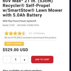 BRAND NEW‼️ 60V Max* 21 in. (53cm) Recycler® Self-Propel w/SmartStow® Lawn Mower with 5.0Ah Battery$300Fresno, CA