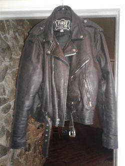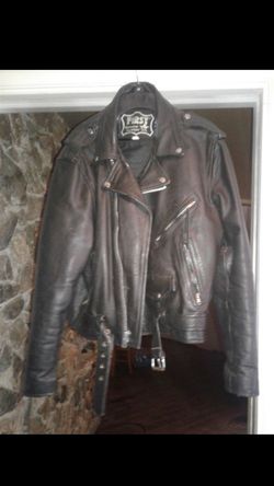 Medium/ lrg genuine leather biker jacket for a woman it says 42, $40$40Fresno, CA