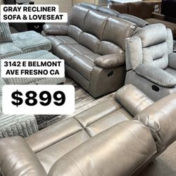 LEATHER SOFA & LOVESEAT RECLINER / SILLONES DE PIEL RECLINABLES COLOR GRIS $1Fresno, CA