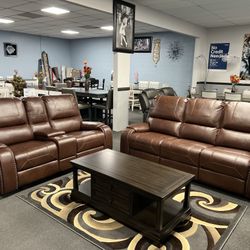 2PC Brown Leather Sofa & Loveseat w/ Wireless Charger & Power Recliners $1,999Fresno, CA