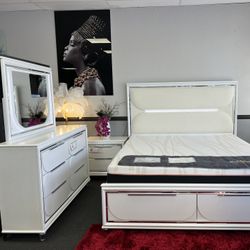 4PC White King Bedroom Set w/ LED Lights $1,999Fresno, CA