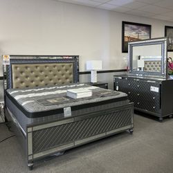 4PC Gray King Bedroom Set w/ LED Lights $1,599Fresno, CA