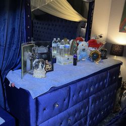 Beautiful king size complete bedroom blue velvet set read ad carefully $2600 Obo no lowballing$2,600Fresno, CA