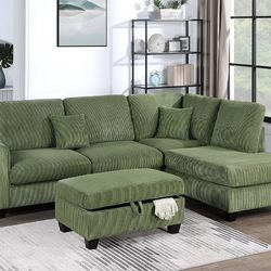 Green Sofa Sectional W/ Storage Ottoman $599Fresno, CA