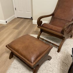 Dutailier Glider Wooden & Brown Leather Chair with Ottoman$350Sanger, CA
