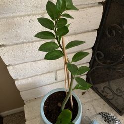 Zz Plant Spiral In Baby Blue Speckled Pot $40Fresno, CA