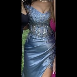 Light Dirty Blue With Silver Color Prom Dress SMALL $150Fresno, CA