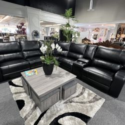 Black Leather Sofa Sectional w/ Power Motion Recliners & USB Ports $1,399Fresno, CA