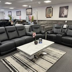 Black Sofa & Loveseat Premium Leather Power Recliners & Adjustable Headrest + Wireless Charging $1,999Fresno, CA