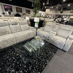 Light Gray Leather Sofa Sectional w/ Power Motion Recliners & Wireless Charger $2,499Fresno, CA