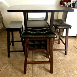 5-piece drop leaf pub table set in dark espresso and black.$180Fresno, CA