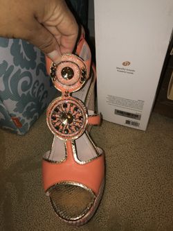 Vince Comodo gold and coral wedge heels$35Clovis, CA