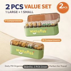 2PCS Pill Organizer Value Set – Large & Small Daily Medicine Box, 7+4 Compartments, Portable Travel Case$15Corona, CA