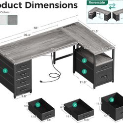 L Shaped Computer Desk with 6 Drawers & Power Outlet, 55 Inch Corner Desk with Reversible Storage Shelf & File Drawer, Home Office Desk, Grey Oak$90Ontario, CA