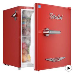 1.7 Cu.Ft Retro Mini Fridge, Low Noise, Energy Saving, Adjustable Thermostat, Single Door, Side Bottle Opener, Metal Handle, Compact Refrigerator for $40Rancho Cucamonga, CA