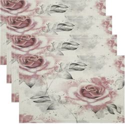 Rose Placemats Set of 8, 17x12 Inch Vintage Romantic Floral Pink Rose Gray Leaf$15Ontario, CA