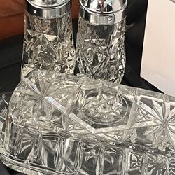 Anchor Hocking Early American Prescut (EAPC) starburst patterned glass salt and pepper shaker set with a matching butter dish$25Homeland, CA