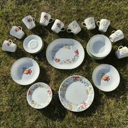 Dinnerware - Vintage Corelle Chutney Swirl Fruit Design - 7 Complete plate Settings $85San Bernardino, CA