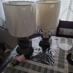HAVE 2 SMALL LAMPS WITH SHADES BOTTOM WOOD GREY COLOR NEW$18San Bernardino, CA