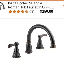 New Delta Porter 2-Handle Deck-Mount Roman Tub Faucet in Oil-Rubbed Bronze. Retails $280 With Taxes!!$80Fontana, CA