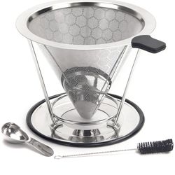 Stainless Steel Pour Over Coffee Dripper, Reusable Filter Paperless Cone Metal Coffee Maker with Removable Cup for 1-2 Cup, Coffee Spoon and Cleaning $7Rialto, CA