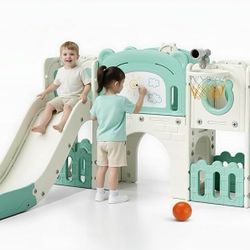 10-in-1 Large Toddler Slide Set, Kids Slide Climber Playset with Drawing Board, Basketball Hoop, Sturdy Baby Playground, Indoor Outdoor Playhouse for $95Ontario, CA