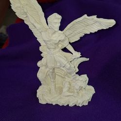 ARCHANGEL MICHAEL FIGHTING DEVIL FIGURINE 8 INCHES TALL RIGHT WING HAS BEEN REPAIRED SEE LAST PICTURE. G12M063$12Hesperia, CA
