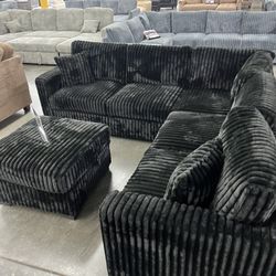New! Corduroy Black Sectional And Ottoman, Sectional Sofa, Black Couch, Black Sofa, Sectional And Ottoman, Plush Sectional Couch, L-Shaped Sofa Couch$549Ontario, CA