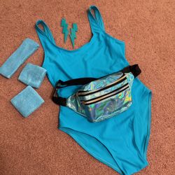 New Medium Blue 80s Costume Outfit Festival Rave Bodysuit Bathing Suit Swimsuit $20Upland, CA