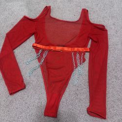 New Small Red Mesh Sheer Long Sleeve Chain Festival Bodysuit Lingerie Top Outfit $20Mount Baldy, CA