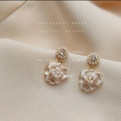 Vintage Handmade Camellia Earrings with Natural pearls$9Chino Hills, CA