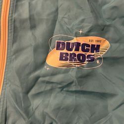 Dutch Bros Packable Retro Teal Blue Hooded Windbreaker, unisex Medium 1/2 Zip$40San Bernardino, CA