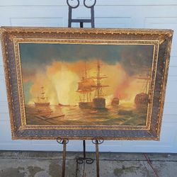 Large Vintage Framed Clipper Ships Naval Battle Signed Oil On Canvas Painting$498Menifee, CA