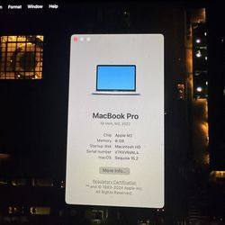 Apple M2 MacBook Pro 13”$800Yorba Linda, CA