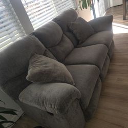 Gray Reclining Couch Set — Charging Ports + Storage — Excellent Condition$300Wrightwood, CA