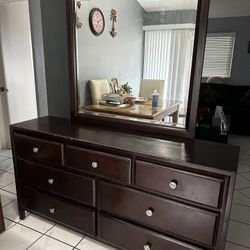 Dark Brown Dresser + Mirror – Solid & Functional$115Moreno Valley, CA