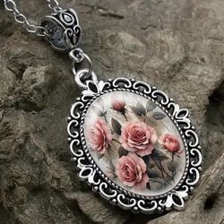 ROMANTIC - FLOWER GLASS CABOCHON PENDANT WITH CHAIN$10Ontario, CA