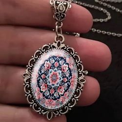 MANDALA FLOWER GLASS CABOCHON PENDANT & CHAIN$10Fontana, CA