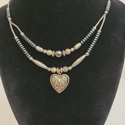 Vintage Heart Necklace Hematite Silvertone 18" F9 $13Diamond Bar, CA
