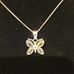 Butterfly Sterling Silver Multicolored Precious Stone Pendant Necklace 16" F9$20Diamond Bar, CA