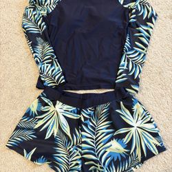 Women Navy Blue & Green Long Sleeve Swimsuit with Shorts Set SMALL$20Beaumont, CA
