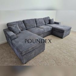 New! Grey 120”L Double Chaise Sectional Sofa, Corduroy Sectional, U-Shaped Sectional, Grey Sectional With Chaise, Soft Plush Sectional,Sofa,Sectional $449Chino, CA