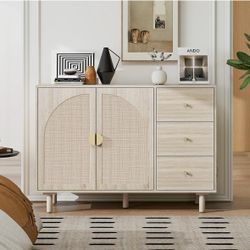 Sideboard Buffet Cabinet with Storage - Rattan 2 Door 3 Drawer Cabinet, Accent Storage Cabinets with Wicker Door, Boho Wood Credenza for Living Room, $89Grand Terrace, CA