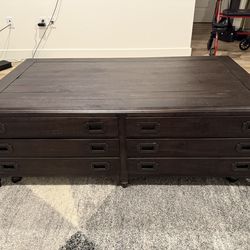 Brown Wood Rectangle Coffee Table With Wheels + Storage Drawers$150Fontana, CA