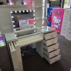 Brand New Vanity With 5 Drawers 2 Side Sliding Drawers, Bluetooth Mirror, Small Shelve From $699 Now $599$599Redlands, CA