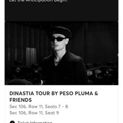One ticket to the Dinastia Tour by Peso Pluma, Tito Double P & Friends is live$100Ontario, CA