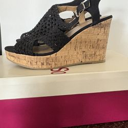 SO Black Wedge Heels Sandals Shoes Size 9.5 - Brand New In Box!$16Victorville, CA