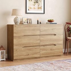 1590a Natural 6 Drawer Dresser for Bedroom,47.2" Wide Chest of Drawers with Groove Handle,Wood Double Dressers with Sleek Lines,Modern Storage Cabine$120Bloomington, CA