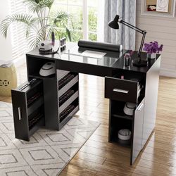 Manicure Table Nail Desk for Nail Tech with Glass Top & Wrist Rest, Black $119San Dimas, CA