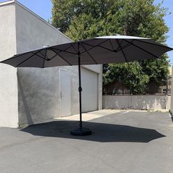 $130 (New in box) Large 15ft double sided outdoor umbrella w/ 65 lbs plastic weight base (red/gray) $130El Monte, CA